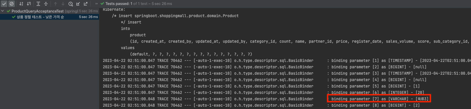 그런데, 실제로 DB 에 Insert 할 때는 한글이 ??? 으로 바뀌어서 파라미터가 바인딩 되었다.