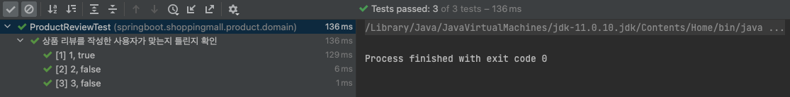@DisplayName("상품 리뷰를 작성한 사용자가 맞는지 틀린지 확인")